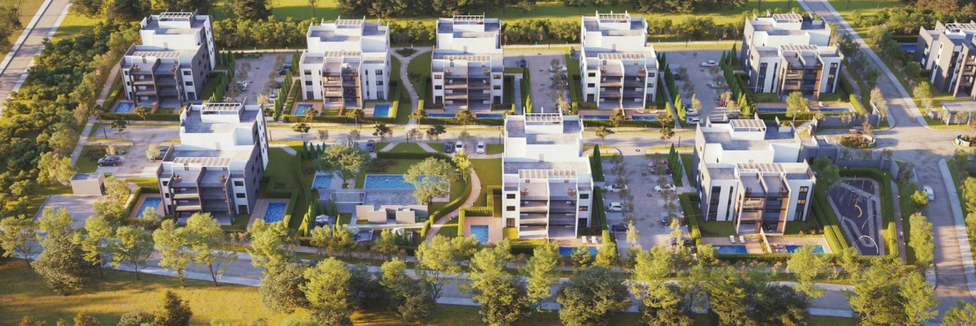 Recall, Sunset Gardens has a very attractive location. The new complex is located between the casino resort City of Dreams Mediterranean and golf resort Limassol Greens in Limassol.